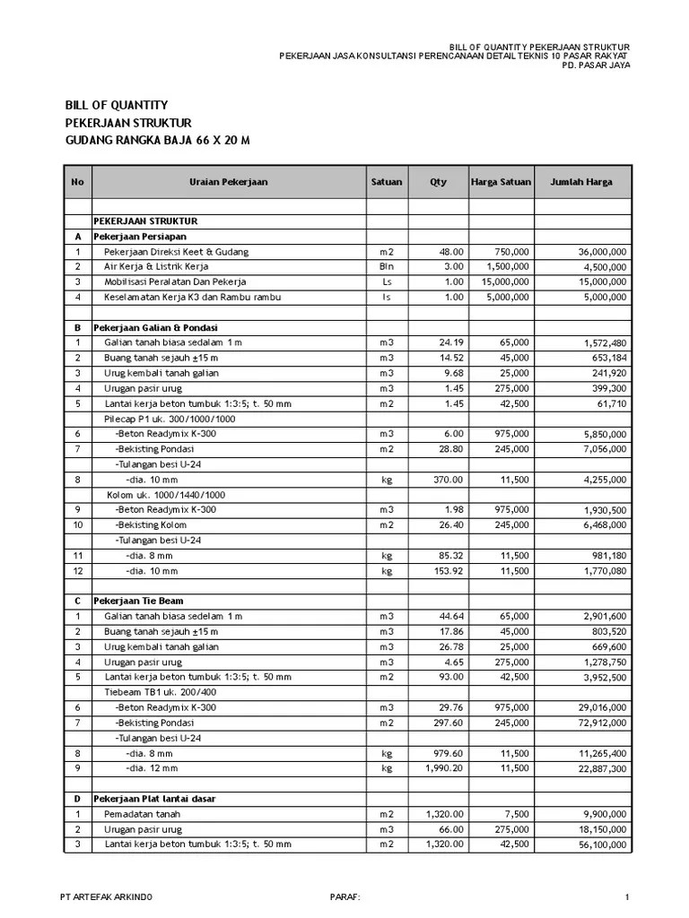 Atau daftar kuantitas harga atau lebih umum disebut dengan rab proyek.