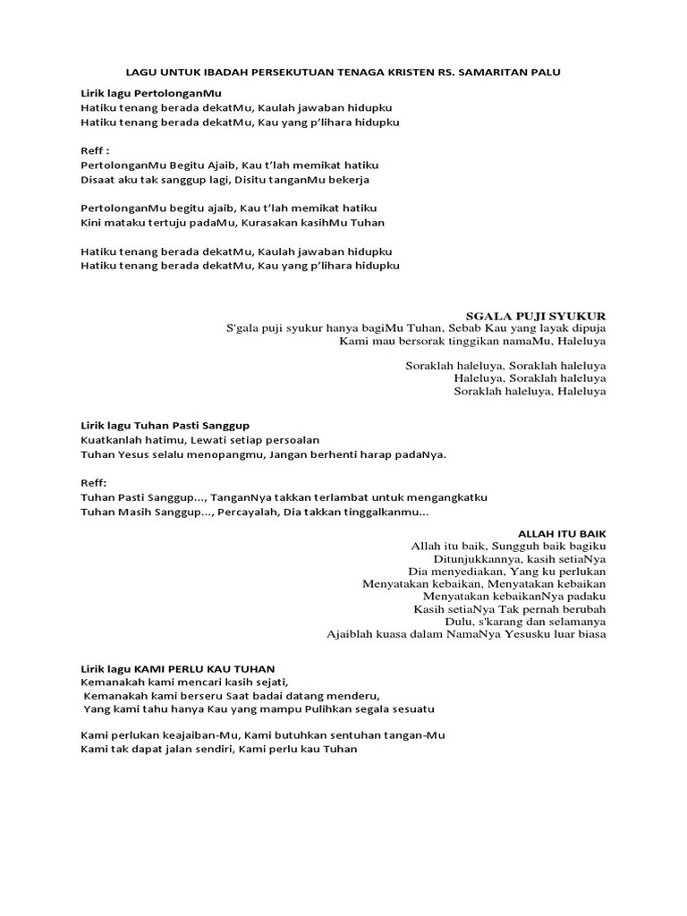 Kutinggikan namamu bapa di surga. Kubersyukur kepadamu oh tuhanku atas kasihmu padaku kurenungkan firman yang kau b'rikan padaku oh tuhan uhu. Daftar lirik lagu rohani kristen tentang bersyukur kepada tuhan atas. Kumpulan lirik dan akor lagu rohani. Ku bersyukur kepada`mu ku bermazmur memuliakanmu kar`na berkat kasih dan sayangmu yang kau curahkan bagi umatmu segala pujian dan sembah hanya bagimu tuhan Sungguh kau hebat ajaib perkasa perbuatanmu. Ku bersyukur padamu oh yesusku. Dan bermazmur bagi namamu yang kudus. 8lebih dari yang telah ku pintalebih dari yang telah ku . Hidupku tiada dapat aku mengukurnya tiada dapat aku menghitungnya kebesaran kasihmu ya tuhan yang kau berikan kubersyukur padamu kasihmu . Ku bersyukur kepadamu oh tuhanku. Haleluya kumemujimu tuhan karna kasihmu tak berkesudahan. Halaman muka bersyukurlah (haleluya ku memujimu tuhan).